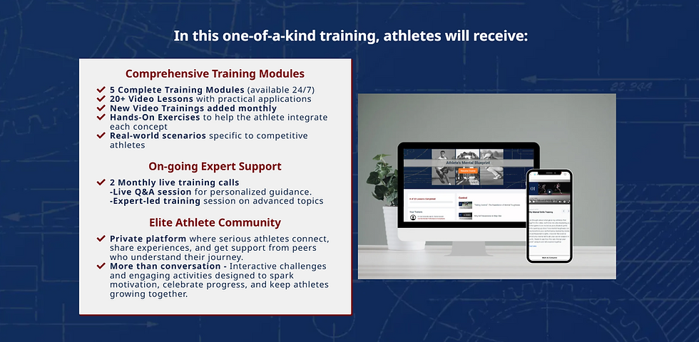 Athlete’s Mental Blueprint is a progressive training system, designed to help athletes develop the internal skills required to navigate the emotional, cognitive, and competitive demands of sport.